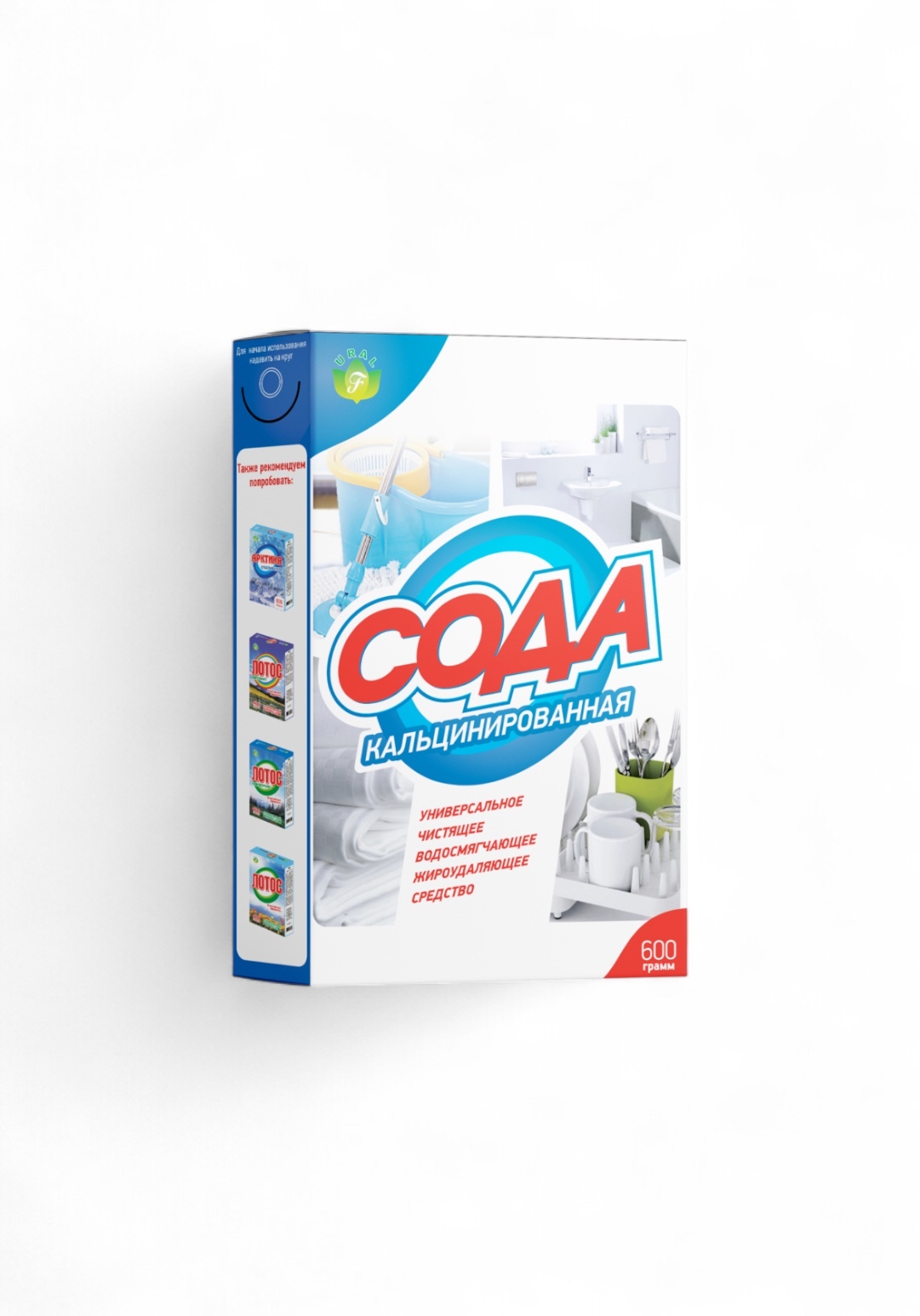 для стирки и кипячения тканей, смягчения воды, чистки фарфоровой, фаянсовой и эмалированной посуды, а так же других хозяйственных целей.